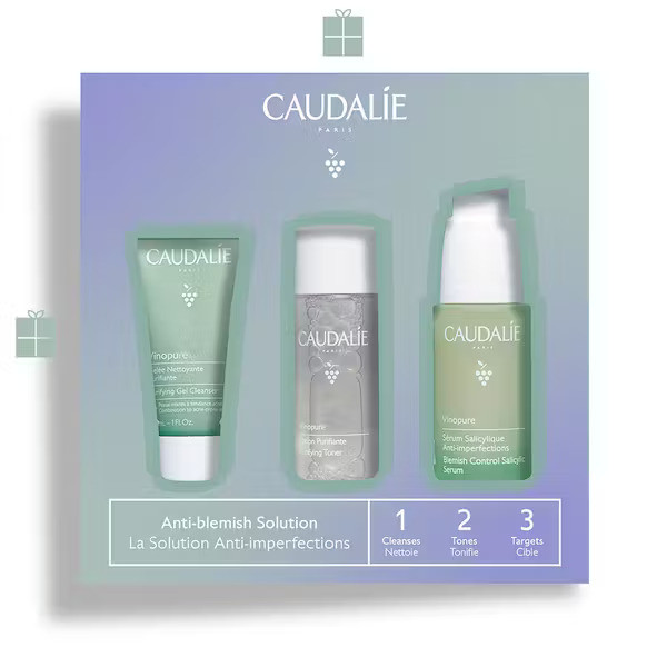 ست مراقبت پوست چرب VINOPURE کدلی CAUDALIE یک محصول استثنایی برای افرادی است که پوست چرب و مستعد آکنه دارند و می توانند با استفاده از این پکیج تمامی محصولات ضروری خود را در دست داشته باشند. در این ست یک عدد تونر(50 میلی لیتر)، یک ژل پاک کننده (30 میلی لیتر) و یک سرم ضد جوش (30 میلی لیتر) قرار دارد. ژل پاک کننده VINOPURE کدلی به صورت اختصاصی وظیفه شستشو و پاکسازی منافذ پوست از هرگونه آلودگی و چربی را برعهده دارد. این ژل یک پاک کننده عمقی است و چربی گیر افتاده در منافذ پوست را برطرف می کند. تونر VINOPURE کدلی موجود در این ست پس از شستشوی صورت استفاده می شود و پاکسازی پوست را عمیق تر می نماید. تونر منافذ باز پوست را کوچک تر نموده و به مات شدن پوست کمک می کند. سرم ضد جوش VINOPURE کدلی با بهره مندی از سالیسیلیک اسید طبیعی و نیاسینامید جوش های فعال صورت را از بین می برد، مانع از ایجاد دوباره آکنه می شود. این سرم التهاب و قرمزی ناشی از چربی و انسداد منافذ پوست را کاهش می دهد و در نهایت پوستی شفاف و شاداب به ارمغان می آورد.