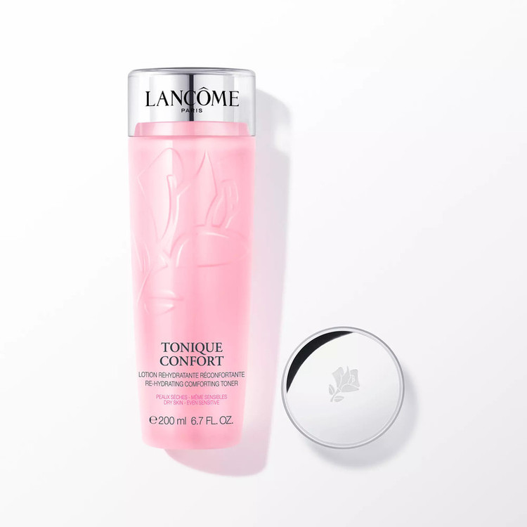 تونیک آبرسان Confort از محصولات با کیفیت کمپانی لانکوم می باشد که می تواند با تسکین و کاهش التهاب پوست، خستگی های روزمره را از چهره، رفع و شادابی و طراوت را به پوست بازگرداند. این محصول برای پوست های خشک و حساس طراحی شده و ترکیبات تشکیل دهنده ی آن به گونه ای می باشد که حداکثر سازگاری را با این نوع پوست ها دارد.تونر آبرسان کانفورت فرمولاسیونی غنی شده از عصاره بادام، اسید هیالورونیک و عسل میباشد . اسید هیالورونیک موجود در این تونر یک هومکتانت بسیار قوی بوده و مولکول های آب را جذب می کند. از این رو یک آبرسان بسیار قوی برای پوست به شمار می رود. اسید هیالورونیک با قدرت جذب رطوبت بالایی که دارد می تواند خطوط ظریف را از بین ببرد و پوست شما را صاف کند. روغن بادام شیرین نیز یک مرطوب کننده ی بسیار قوی می باشد. این روغن موجود در تونر آبرسان کانفورت لانکوم سبب حفظ رطوبت پوست و افزایش نرمی و لطافت آن می شود. عسل موجود در تونر لانکوم یکی از ترکیبات موثر آن بوده که سرشار از ترکیبات معدنی و ویتامین های مورد نیاز پوست است. همچنین به سالم ماندن سلول های پوستی و بهبود هرچه سریع تر آن ها کمک می کند.