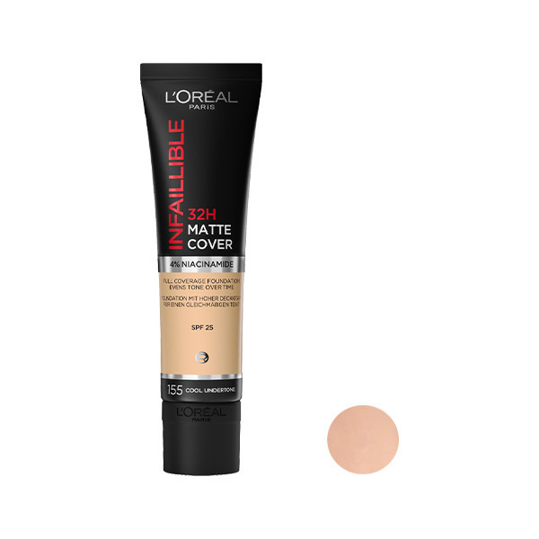 کرم پودر Infaillible Matte Cover کاملاً عیوب را می پوشاند و جلوه ای کاملاً طبیعی و بدون اثر ماسک ارائه می دهد.این محصول با نیاسینامید تقویت شده است که به تدریج رنگی یکنواخت به پوست می دهد. همچنین بافتی سبک دارد که باعث سنگینی پوست نمی شود. ضد آب بوده و حاوی SPF25 است. این کرم پودر برای انواع پوست مناسب است.