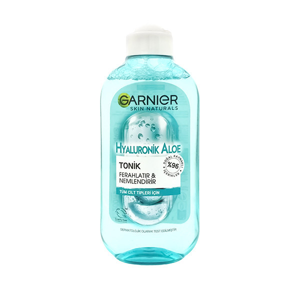 تونر پاک کننده هیالورونیک اسید و آلوئه ورا گارنیه Garnier Hyaluronik Aloe دارای ترکیبات طبیعی همچون آلوئه ورا و هیالورونیک اسید است و موجب حفظ رطوبت و شادابی پوست میشود. این محصول علاوه بر قدرت پاک کنندگی بالا، با تنظیم و متعادل ساختن pH پوست موجب طراوت هرچه بیشتر آن می گردد. این محصول به خاطر میزان آبرسانی بالا، خاصیت ارتجاعی پوست را بهبود می بخشد و همچنین خطوط ریز صورت و چین و چروک های سطحی پوست را در طی زمان محو می سازد. فرمولاسیون این تونر برای انواع پوست حتی پوست های حساس مناسب است.