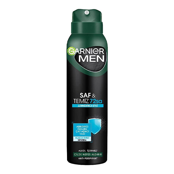اسپری گارنیر Saf & Temiz 72Sa برای استفاده آقایان ایده آل است و با پوست و فیزیولوژی آقایان کاملا سازگاری دارد. رایحه طراوت بخش و ملایمی دارد و تا طولانی مدت عطر دلنشین آن ماندگاری دارد. این اسپری فاقد الکل است و به همین سبب فرمولاسیون آن آلرژی زا و حساسیت زا نیست و تا 72 ساعت ماندگاری دارد و همچنین این محصول ویژه میزان قابل توجهی روغن درخت چای دارد و با داشتن آنتی اکسیدان بالایی می تواند با قارچ ها و باکتری های پوستی مبارزه کند.