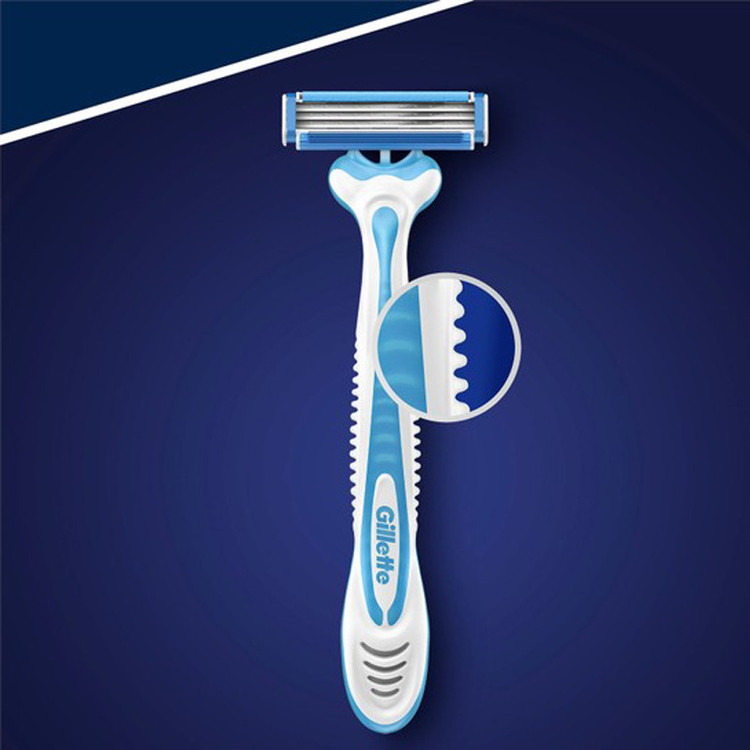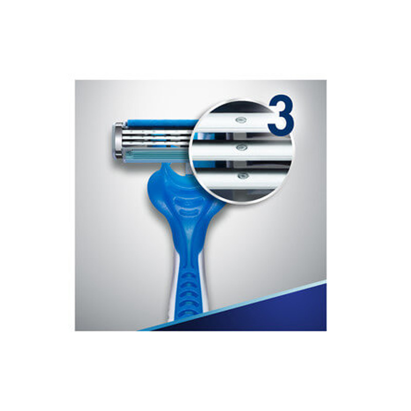 خودتراش ژیلت مدل Blue 3 با تکنولوژی ساخت بالا محصولی با کیفیت مخصوص اصلاح کامل و دقیق آقایان است.این محصول با تیغه های 3 تایی نسبت به ژیلت های تکی صرفه اقتصادی بسیار بالایی دارد.این تیغ ژیلت از تیغه های 3 تایی و استیل ضد زنگ هستند و به راحتی می توان از آن زیر آب و دوش حمام استفاده کرد.سری آن کاملا متحرک میباشد و قابل انعطاف است.این سری با ایجاد زاویه 40 درجه به راحتی موهای منحنی ها و ناهمواری های صورت را می تراشد.این محصول برای اینکه حرکت آن روی پوست صورت روان تر شود و استفاده به راحتی و بدون آسیب دیدگی صورت گیرد در بالای آن نوار ژل صابونی قرار دارد که خاصیت مرطوب کنندگی، نرم کنندگی و خنک کنندگی دارد و باعث می شود پس از اصلاح پوستتان دچار خشکی، حساسیت و سوزش نشود. طراحی ارگونومیک دسته باعث میشود که محصول به راحتی در دست جا بگیرد و دسترسی و اصلاح نواحی مختلف پوست صورت آسان تر گردد،همچنین فاصله مناسب بین تیغه ها باعث می شود که موها به راحتی از بین آن ها لیز بخورند و تمیز شوند.