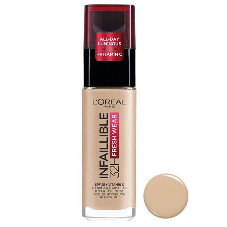 کمپانی لورآل کرمپودری جدید را تولید کرده که تا 32 ساعت احساس زیبایی و سبکی را بهصورت موقتی به شما نشان خواهد داد. کرم پودر لورآل مدل « 32h Infaillible» از ماندگاری بالایی برخوردار است که پوشانندگی فوقالعادهای روی پوستتان ایجاد خواهد کرد. لورآل با سابقه ای یکصد ساله در صنعت لوازم آرایشی و بهداشتی جزو برندهای محبوبی است که امروزه محصولات خود را در بیش از 150 کشور جهان عرضه میکند و حائز رتبه اول جهانی در این صنعت است. برای انتخاب کرمپودر جدا از کیفیت، مرغوبیت و برند باید به نوع پوست خود اهمیت بدهید و بدانید چه نوع کرمپودری با پوست شما سازگار است. با استفاده از کرمپودر قرار نیست رنگ پوست خود را تغییر دهید بلکه میخواهید رنگی یکدست در سطح پوست صورت خود ایجاد کنید. پس مناسبترین رنگ برای شما رنگ پوست شما است.اینفائیبل برای پوستهای مختلط تا چرب سازگار است و بافت آن در سطح پوست تا 32 ساعت تغیری نخواهد کرد و مثل همان ساعات اولیهای خواهد بود که روی پوستتان است و باعث خشکی و خستگی پوست شما نخواهد شد و با رطوبت رسانی که در فرمولاسیون خود دارد شادابی آن را حفظ میکند. کرمپودر لورآل مدل «Infaillible» به شمارهی 130 با تن رنگ متوسط از بافت سبکی برخوردار است که اثر آن تا 32 ساعت روی پوستتان ثابت خواهد ماند و همین مزیت این محصول را محبوب کرده است. در این کرم پودر ویتامین C نیز استفاده شده تا با خاصیت جوان کننده خود تازگی دوباره ای به پوست شما ببخشد.