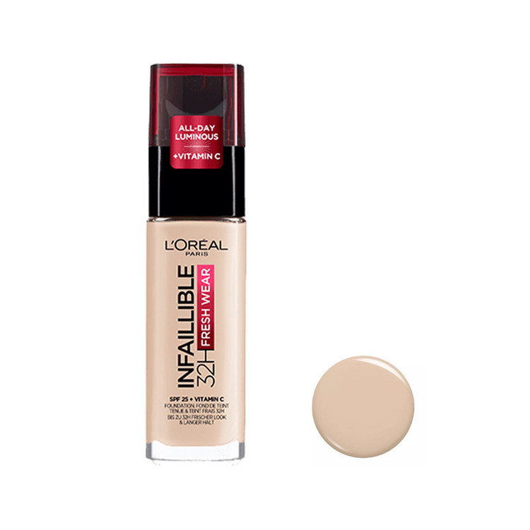 کرم پودر Infallible لورآل، با پوشش و ماندگاری 32 ساعته، رنگ پوست را یکنواخت می کند. این کرم پودر دارای SPF25 و ویتامین C است که از پوست در برابر اثرات مخرب نور خورشید محافظت می کند. کرم پودر لورآل ضد حساسیت است و رطوبت و تعریق در پوشش آن تغییری ایجاد نمیکند.