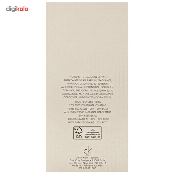 اگر عطرهای با حجم پایین مانند 50 و 100 میلیلیتر برای شما کافی نیستند، میتوانید عطرهای با حجم بالاتر مانند 200 میلیلیتر را تهیه کنید. این حجم از عطر تا مدت زیادی شما را از خرید عطر جدید بینیاز خواهد کرد. در سال 1994 یکی از بهترین عطرهای برند مشهور و آمریکایی «کلوین کلاین» (Calvin Klein) به دنیای مد و عطر معرفی شد. این ادو تویلت «سی کی وان» (CK One) نام دارد. سی کی وان توسط دو عطرساز مشهور و کاربلد با نامهای «هری فرمونت» (Harry Fremont) و «آلبرتو موریلاس» (Alberto Morillas) طراحی شده است. این عطر با بوی شیرین، تند و خنکش برای فصول گرم سال مانند بهار و تابستان و اوایل پاییز پیشنهاد میشود. بطری این عطر کاملاً مینیمال و ساده ساخته شده است. روی شیشه، نشان تجاری کلوین کلاین و نام سی کی وان بهخوبی با رنگ تیره کار شده و خودنمایی میکند. در بطری با رنگ نقرهای و فلزیاش بهخوبی روی شیشه سوار شده است. بطری بسیار خوشدست بوده و بهخوبی در دست آقایان جا میشود. بهمحض اولین اسپری از کلوین کلاین CK One روی پوست و محل نبضتان متوجه بوی آناناس، پرتقال ماندارین، نتهای سبز، پاپایا، نارنج، هل و لیمو خواهید شد. این ترکیب شیرین مرکباتی و میوهای، شادی و تازگی را به شما هدیه خواهد کرد. پس از مدتی، این نتهای آغازی جای خود را به نتهای میانی خواهند داد. نتهای میانی از ترکیب جوز هندی، گل بنفشه، ریشهی زنبق زرد، گل یاسمین، زنبق دره و رز تشکیلشدهاند. این نتهای گلی و کمی تند، طراوت و تازگی را در شما ایجاد میکنند. در ادامه و با گذشت زمان، نتهای پایانی از راه رسیده و جای نتهای میانی را میگیرند. این نتها از چوب صندل، عنبر، مشک، چوب سدر و خزهی اوک موس ساختهشدهاند. این ترکیب طبیعی، تمرکز و اعتمادبهنفس را به شما هدیه میکند. خرید عطر کلوین کلاین CK One با توجه به پخش بوی بالا، ماندگاری قابلقبول، شیشهی محکم، حجم 200 میلیلیتری و برند شناختهشدهاش برای شما و کسی که این عطر را از شما هدیه میگیرد، بسیار رضایتبخش خواهد بود.