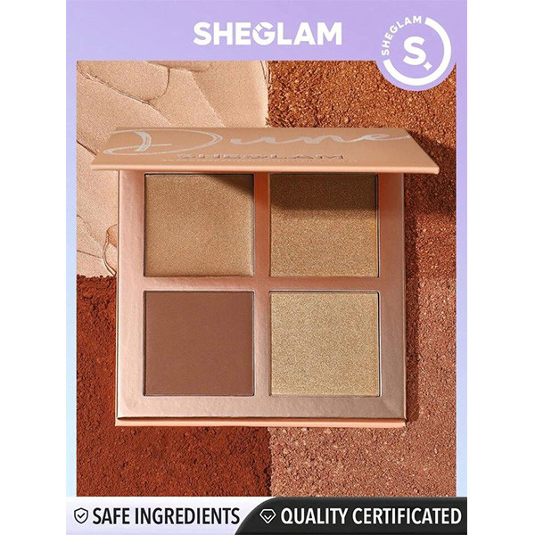 پالت هایلایتر شیگلم SHEGLAM سری 3D Pro Face Palette مدل Dune دارای چهار رنگ است که آرایشی بی عیب و نقص را برایتان به ارمغان می آورد. این پالت شامل هایلایتر، کانتور و برانزر، است که به تقویت ویژگی های طبیعی شما کمک میکند و چهره ای شاداب تر و جذاب تر به شما هدیه میدهد.