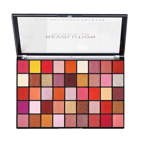 پالت سایه رولوشن مکسی ریلودد بیگ بیگ لاو Revolution Maxi Reloaded Palette Big Big Love حاوی 45 رنگ سایه متفاوت است که در تم رنگی یاقوتی، قرمز و صورتی روانه بازار شده است. پالت سایه چشم رولوشن سطح آرایش شما را ارتقا خواهد داد و برایتان سایه چشم جذابی به ارمغان خواهد آورد. پالت سایه تمام رنگهایی را که ممکن است برای داشتن یک آرایش کلاسیک مورد استفاده شما قرار گیرد، در خود دارد.این پالت که ترکیبی از سایههای مات و براق است حاوی مقدار زیادی رنگدانه است و به شما این امکان را میدهد که با تنها یک بار کشیدن آن روی پوست به جلوه مد نظر خود برسید. بافت سایههای پالت سایه چشم رولوشن پودری بوده و جلوه فوقالعادهای به چشم میدهند. فرقی ندارد که بخواهید خود را برای یک روز کاری معمولی آماه کنید یا یک مهمانی شبانه و پراهیمت، نکتهی مهم این است که این پالت برای هر نوع آرایشی مناسب خواهد بود.بعلاوه پالت سایه revolution تمام سایههایی که برای یک آرایش کامل نیاز خواهید داشت را در خود دارد. این پالت که سایز و اندازهای بزرگتر از پالتهای معمولی دارد، علاوه بر کیفیت فوقالعادهای که دارد، از نظر قیمت بسیار به صرفه و مناسب است. دوام و ماندگاری سایهها روی پلک نیز بسیار بالا بوده و خیال شما را از محو شدن زودهنگام از روی پلک راحت میکند.